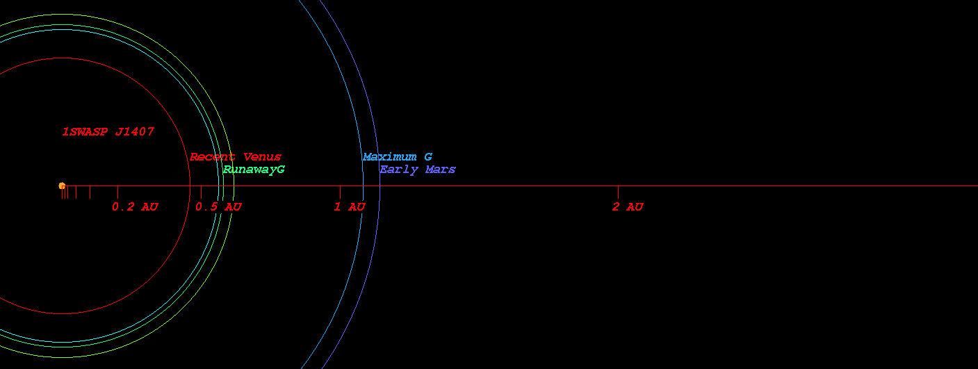 Original Kopparapu Recent Venus for Star 1SWASP J1407 distance : 0.454 AU