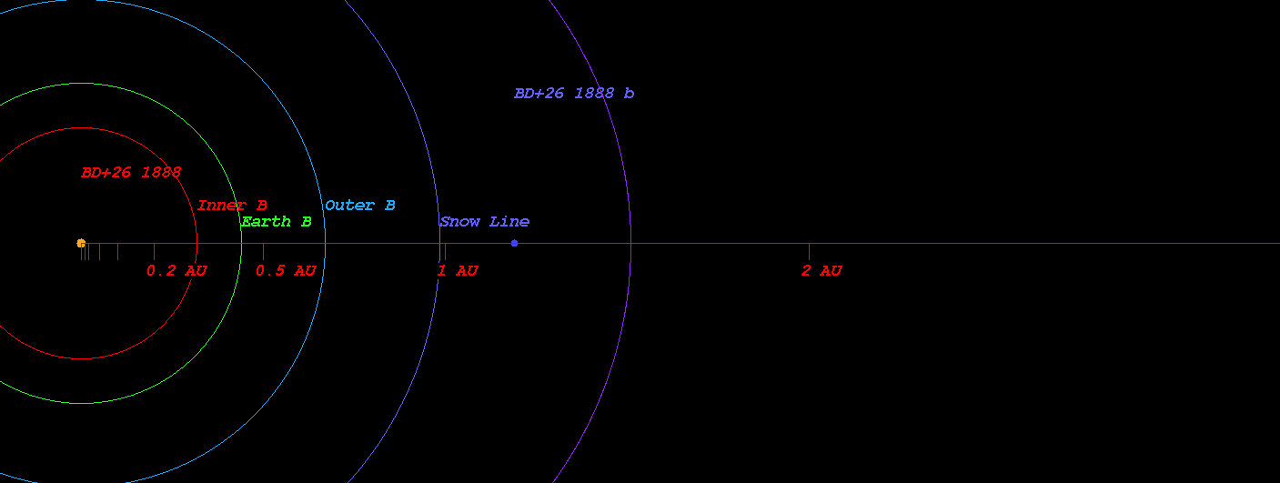 (Habitable zone calculated based on SEAU(Solar Equivalent Astronomical Unit) around the star BD+26 1888)
