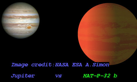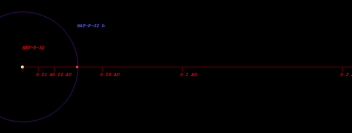 HAT-P-32 b is an exoplanet orbiting the star HAT-P-32, located about 950.8 light-years (291.5 pc) away from Solar System. Its discovery was publicly announced on 2011.