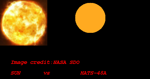 The host star HATS-48A has apparent magnitude of 14.3, with absolute magnitude of 7.2. It is 0.7 times more massive and 0.7 times bigger compared with our Sun. The surface temperature is 4546 with its spectral types of K4
