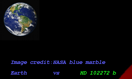 HD 102272 b は、太陽系から 1160.7 光年( パーセク)離れた恒星HD 102272 を周回する系外惑星で 2008 年に公開されました.