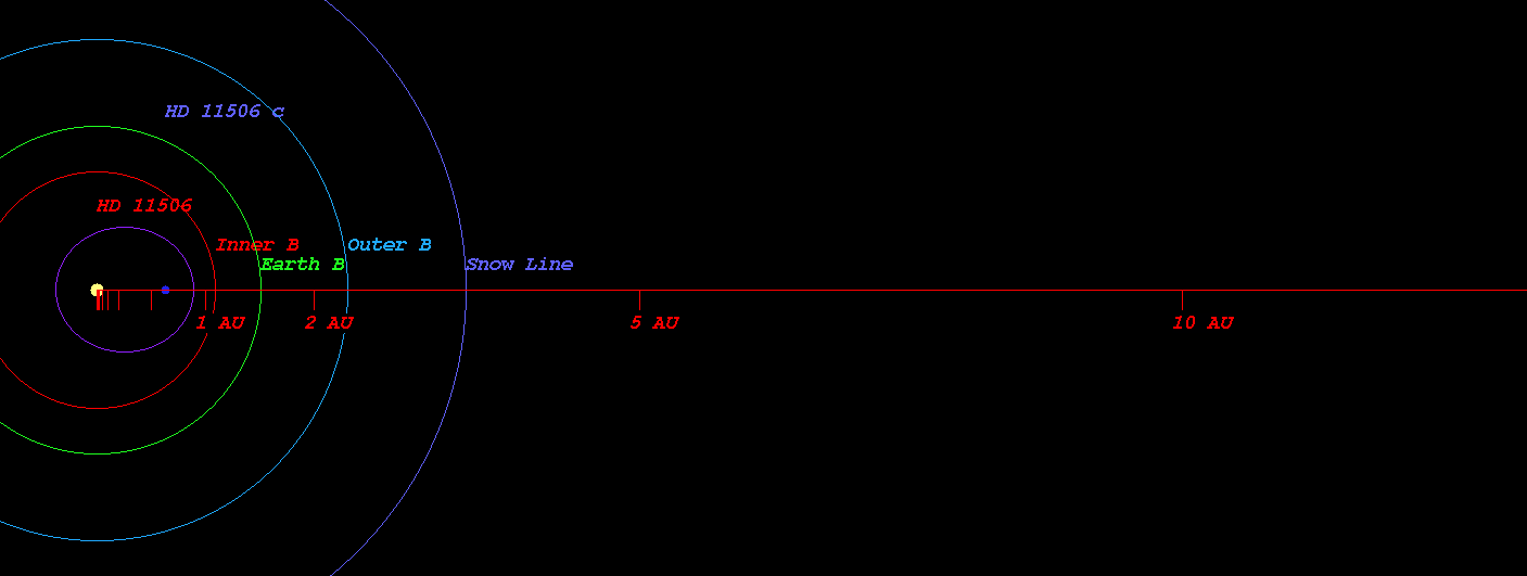 (Habitable zone calculated based on SEAU(Solar Equivalent Astronomical Unit) around the star HD 11506)
