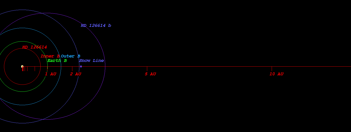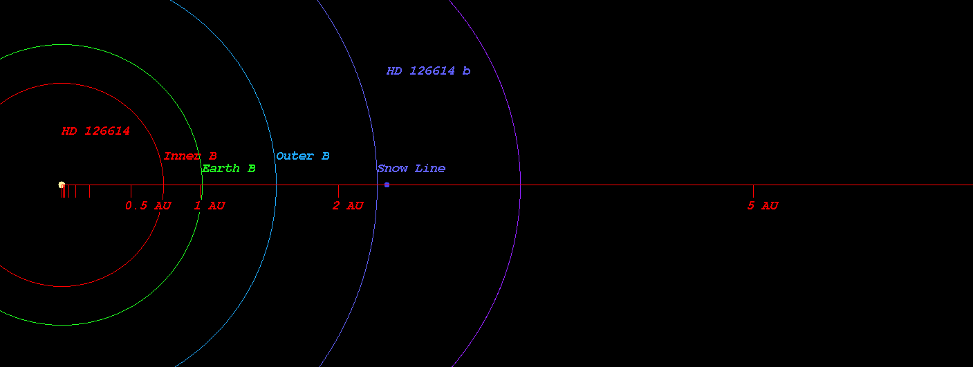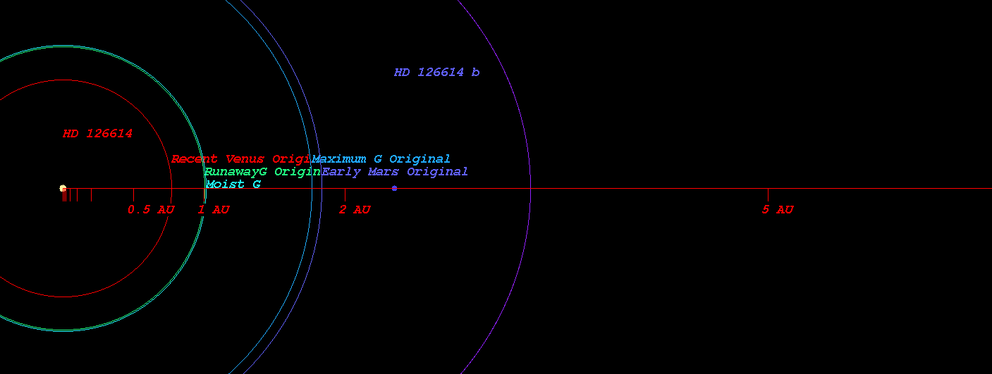 (Habitable zone calculated based on Kopparapu et al.(Original) around the star HD 126614)