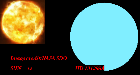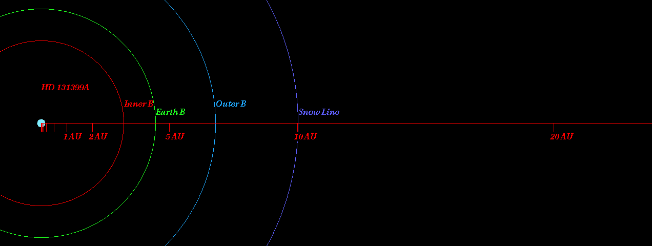 (Habitable zone calculated based on SEAU(Solar Equivalent Astronomical Unit) around the star HD 131399A)