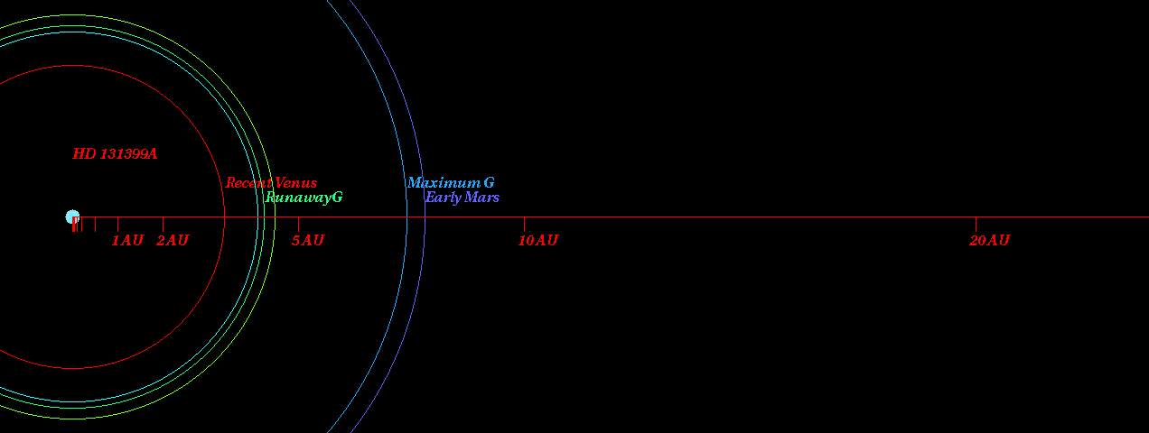 Kopparapu Recent Venus for Star HD 131399A distance : 3.360 AU