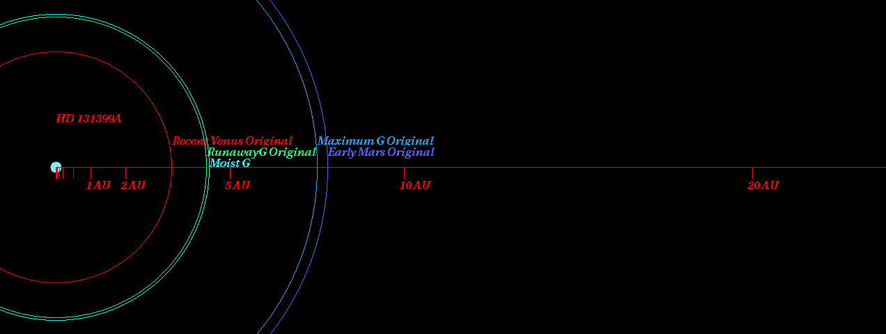 (Habitable zone calculated based on Kopparapu et al.(Original) around the star HD 131399A)