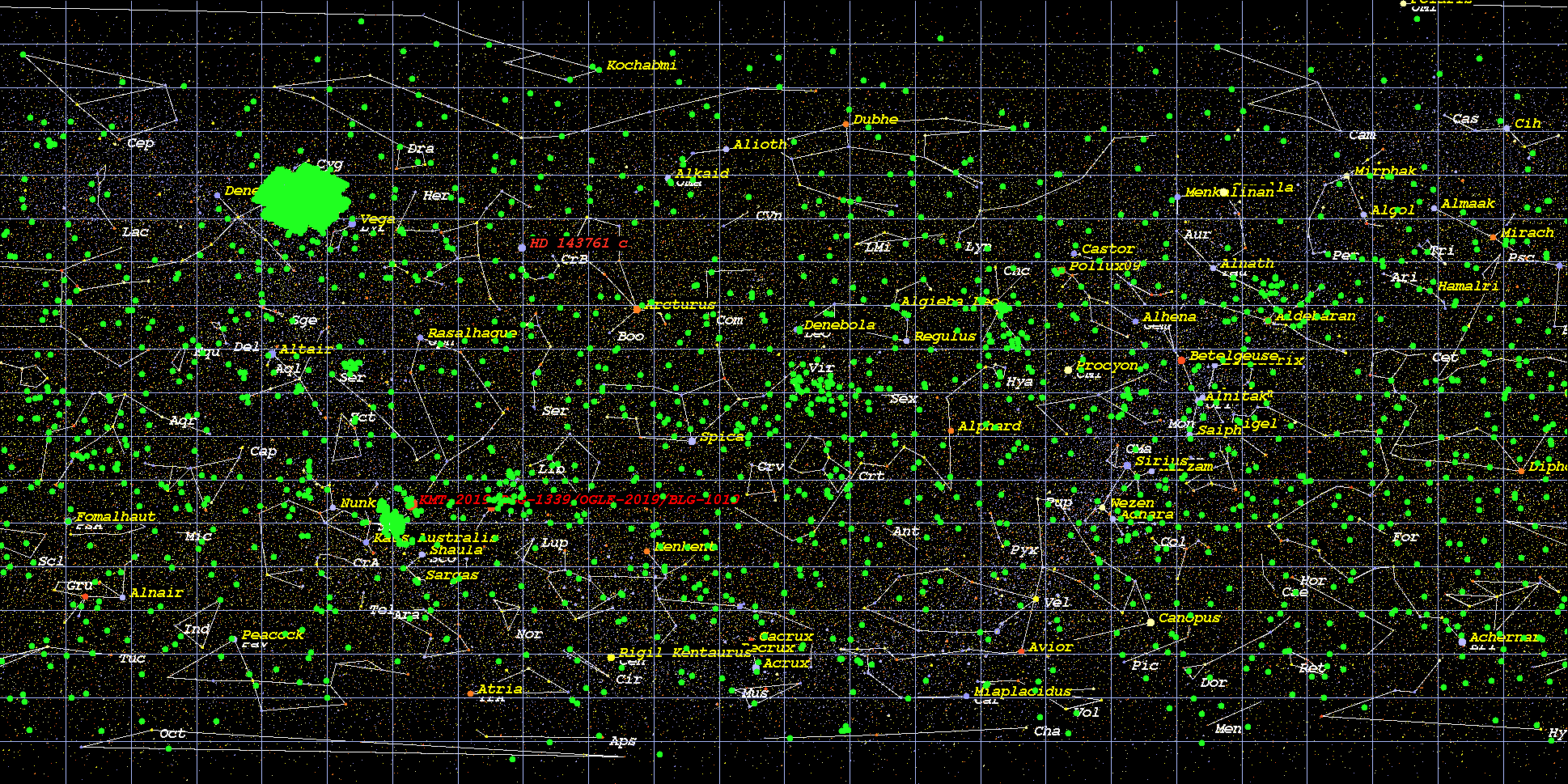 (恒星 HD 143761 とその系外惑星 HD 143761 c のExoKyotoステラマップでの位置)