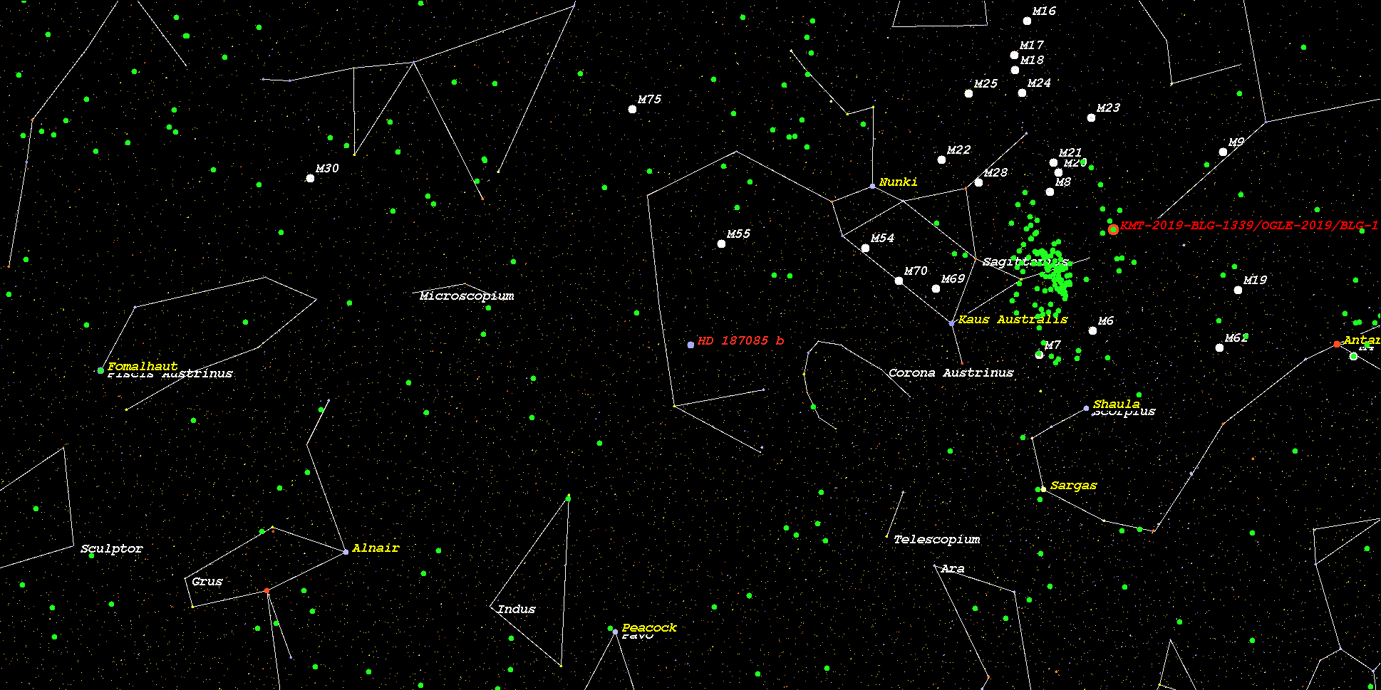(恒星 HD 187085 とその系外惑星 HD 187085 b のExoKyotoステラマップでの位置)