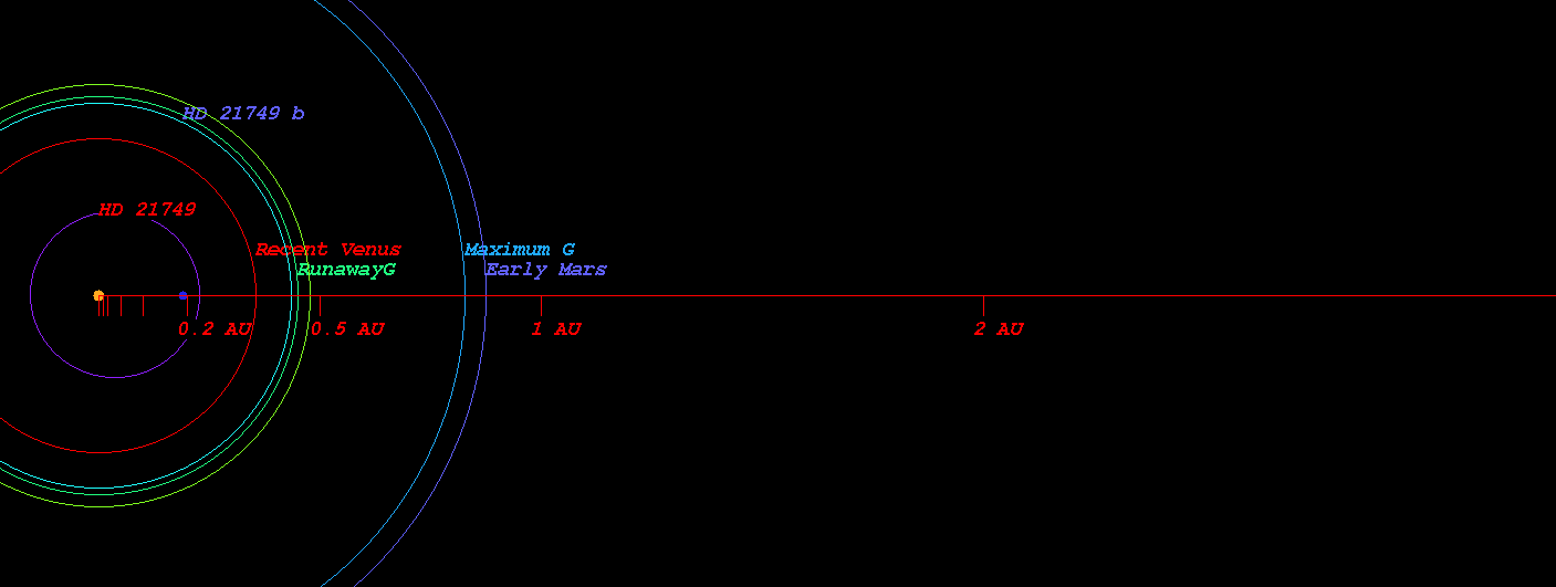 (Habitable zone calculated based on SEAU(Solar Equivalent Astronomical Unit) around the star HD 21749)