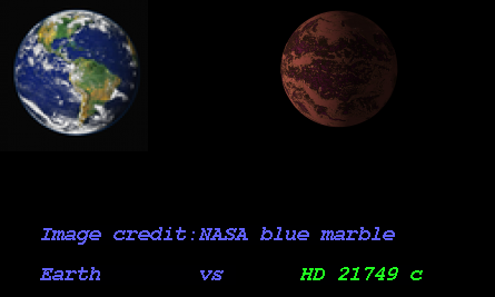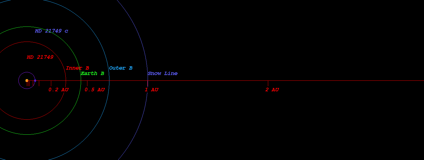 (Habitable zone calculated based on SEAU(Solar Equivalent Astronomical Unit) around the star HD 21749)