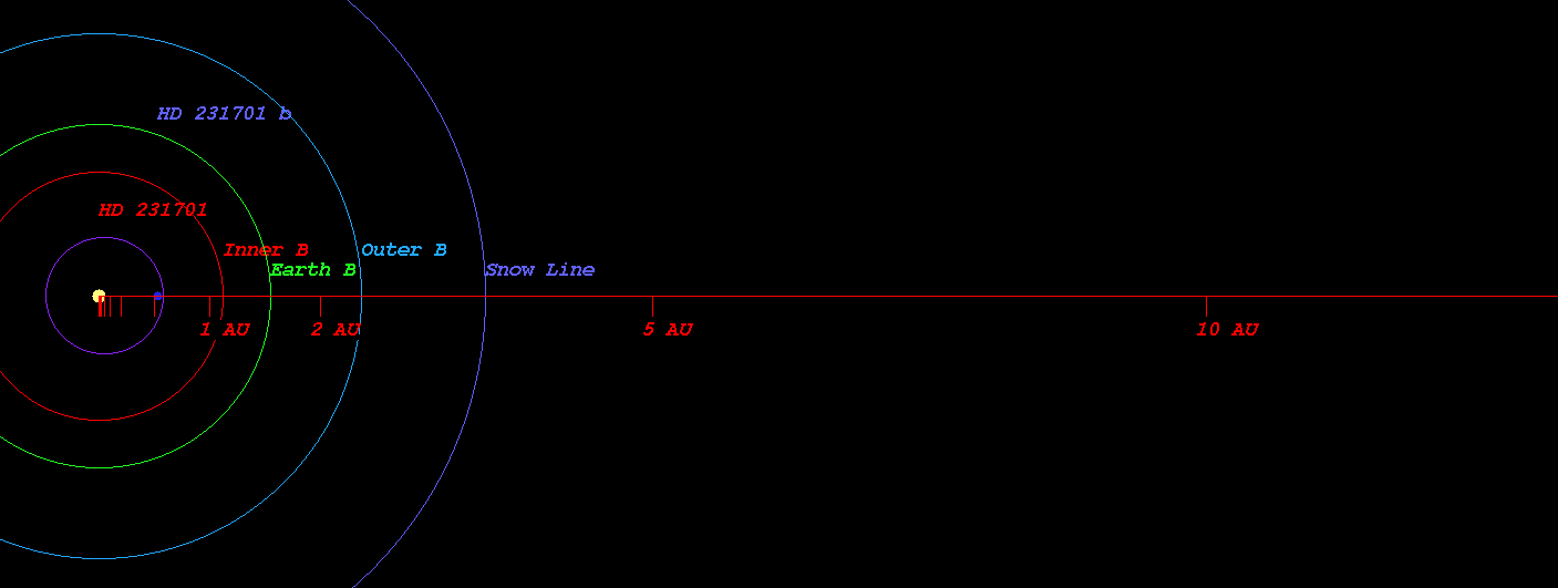 (Habitable zone calculated based on SEAU(Solar Equivalent Astronomical Unit) around the star HD 231701)