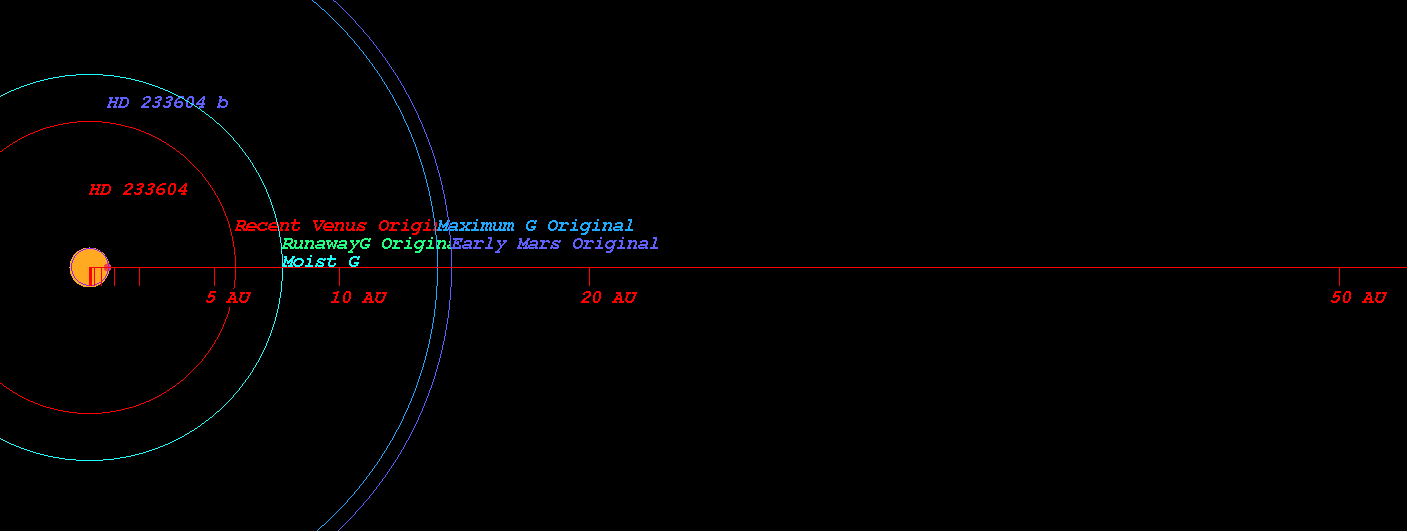 Original Kopparapu Outer Boundary for Maximum Greenhouse for Star HD 233604 distance : 13.928 AU