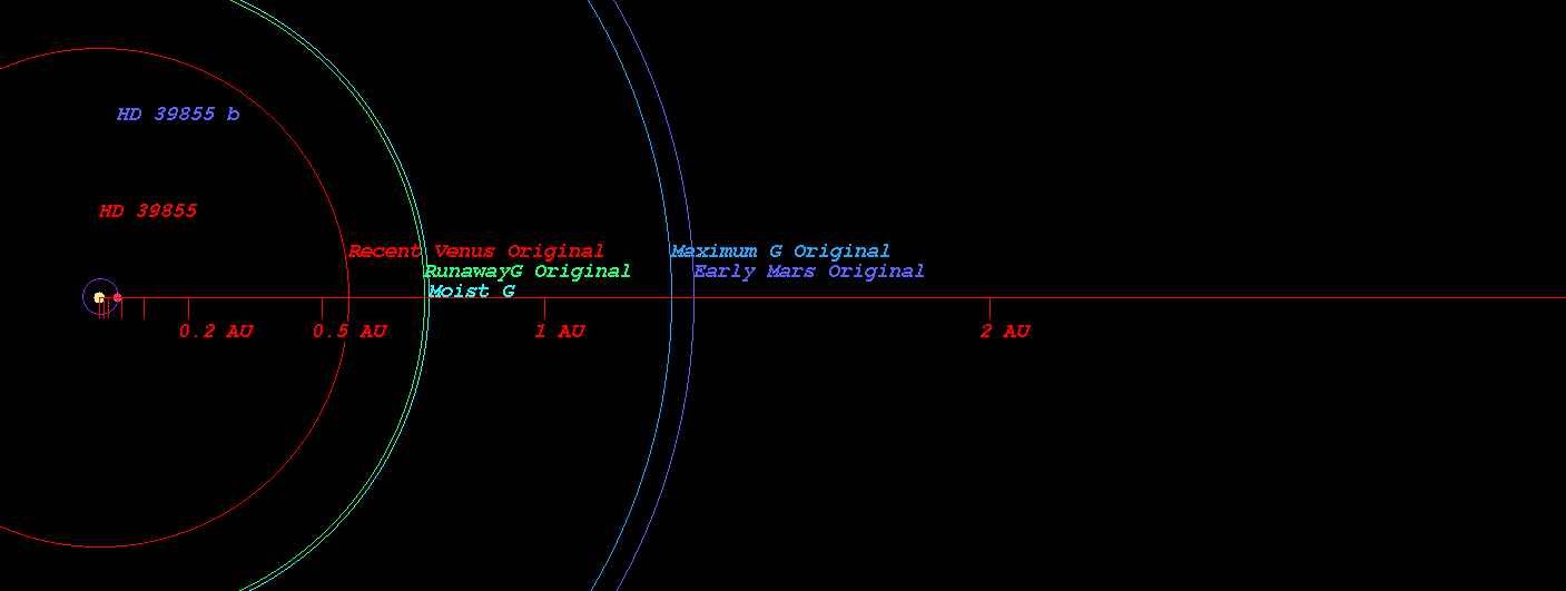 (Habitable zone calculated based on SEAU(Solar Equivalent Astronomical Unit) around the star HD 39855)