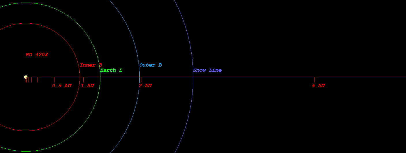 (Habitable zone calculated based on SEAU(Solar Equivalent Astronomical Unit) around the star HD 4203)