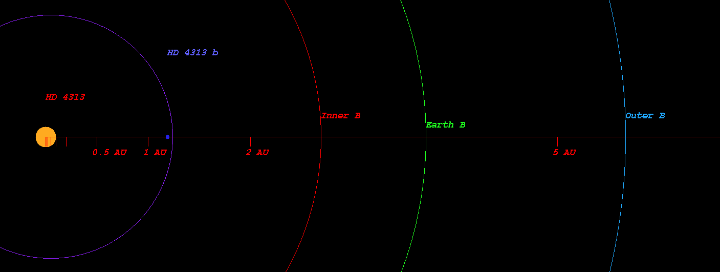 (Habitable zone calculated based on SEAU(Solar Equivalent Astronomical Unit) around the star HD 4313)