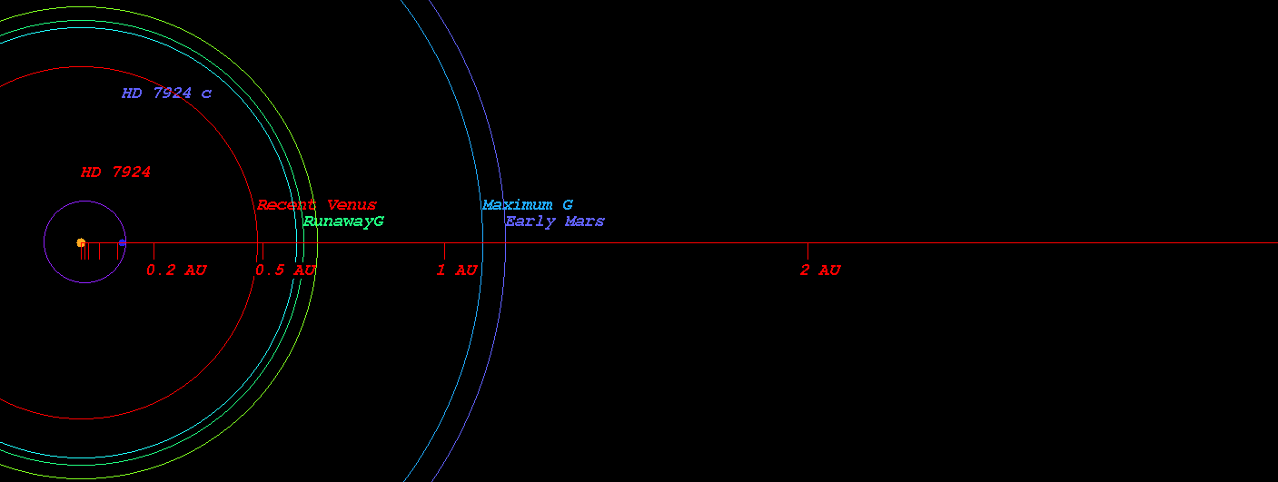 (Habitable zone calculated based on SEAU(Solar Equivalent Astronomical Unit) around the star HD 7924)