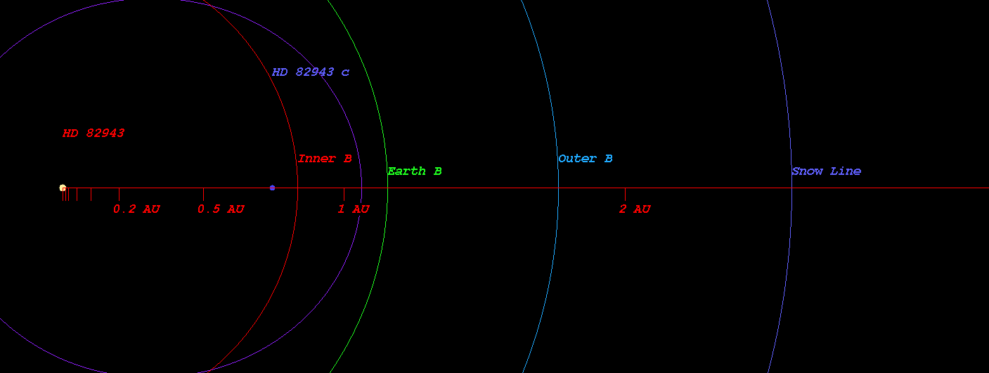 (Habitable zone calculated based on SEAU(Solar Equivalent Astronomical Unit) around the star HD 82943)