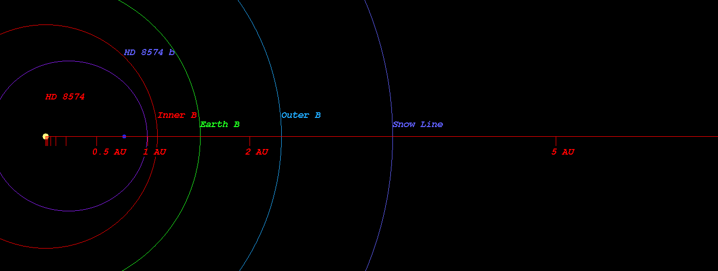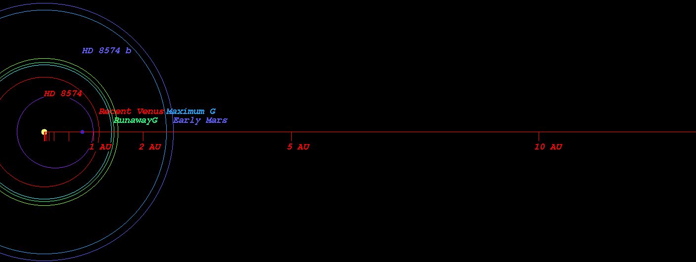 (Habitable zone calculated based on SEAU(Solar Equivalent Astronomical Unit) around the star HD 8574)