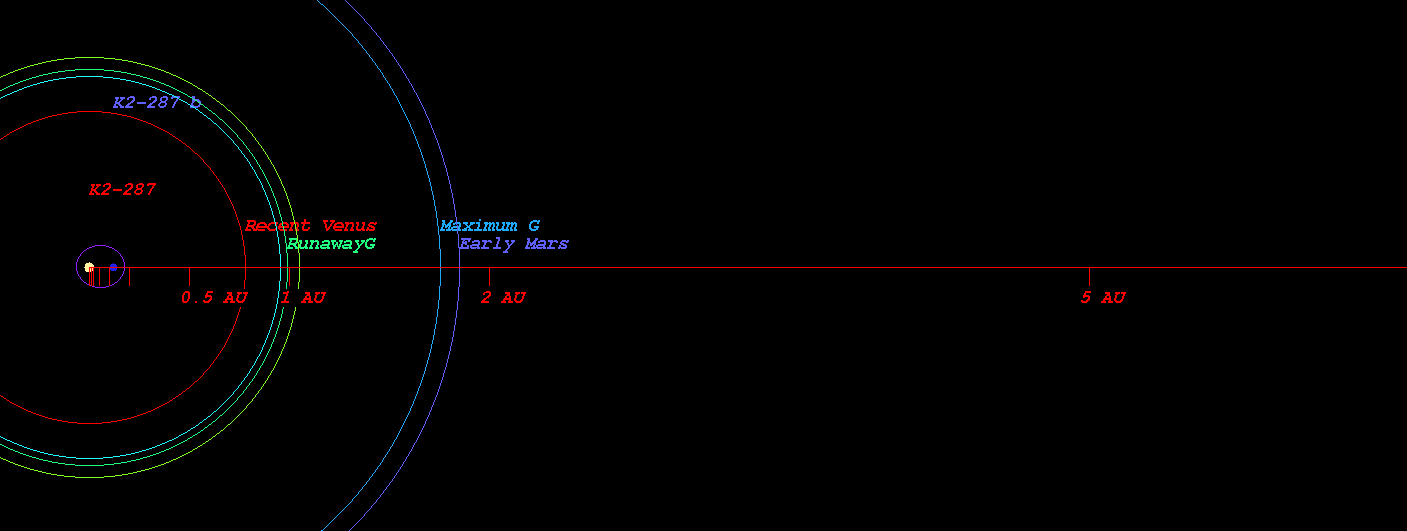 Kopparapu 2013による、恒星 K2-287 の太古の火星条件に相当する半径 : 1.851 天文単位