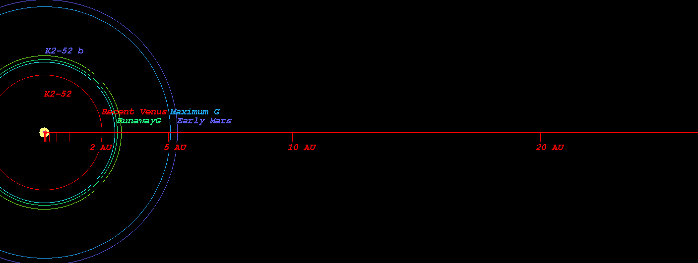 Kopparapu 2013による、恒星 K2-52 の太古の火星条件に相当する半径 : 5.368 天文単位