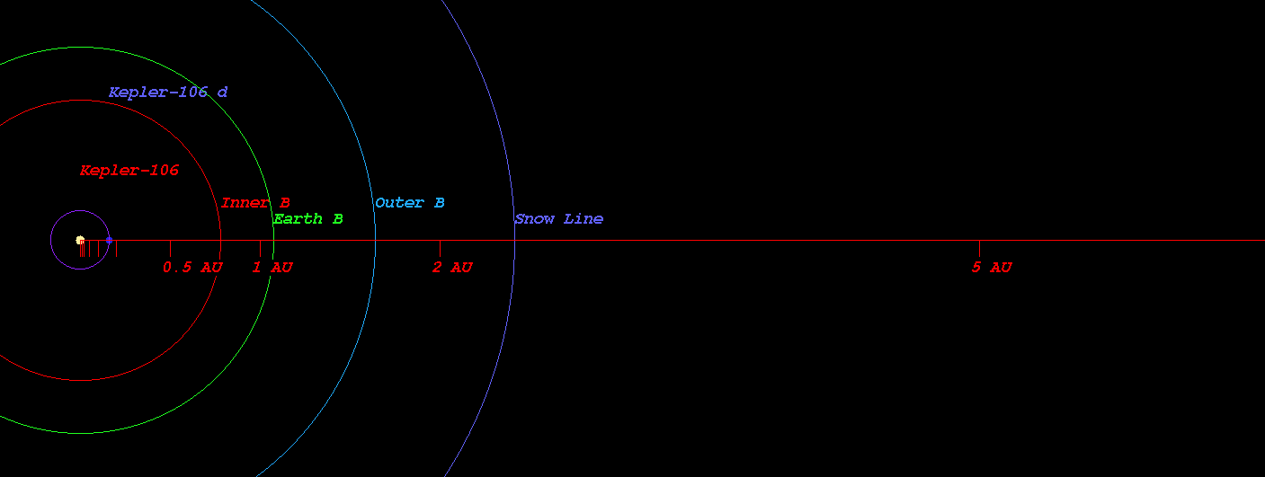 (系外惑星Kepler-106 d の 主星Kepler-106まわりの公転軌道)