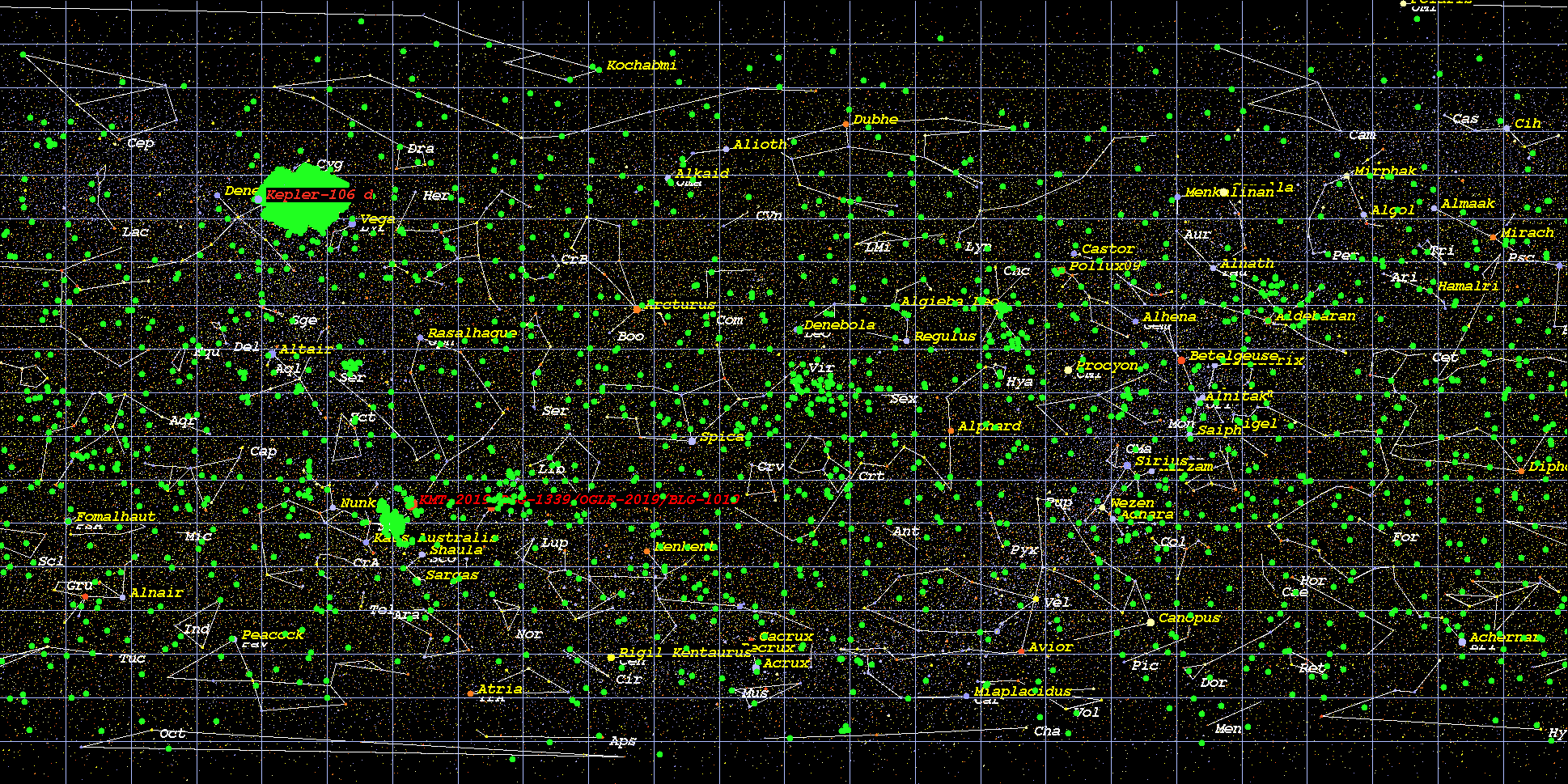 (恒星 Kepler-106 とその系外惑星 Kepler-106 d のExoKyotoステラマップでの位置)