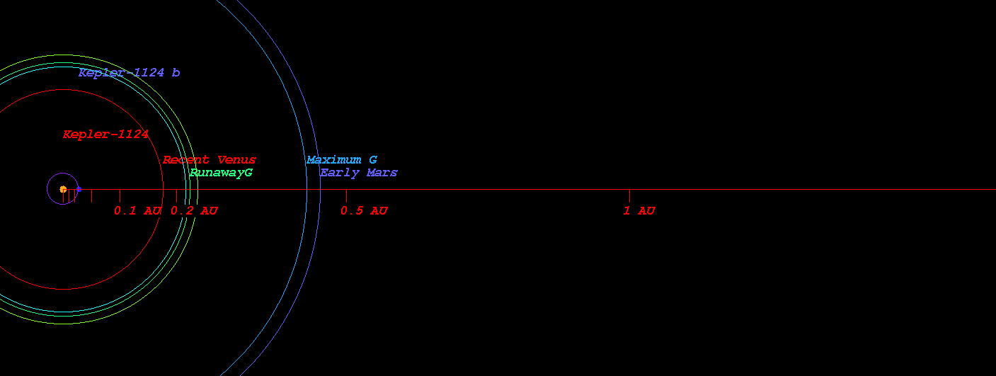 主星 Kepler-1124 のハビタブル・ゾーンは以下の位置にあります。