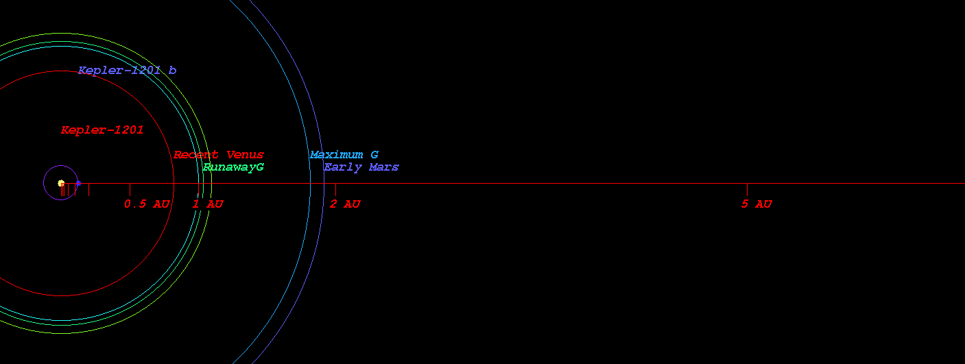 (Habitable zone calculated based on SEAU(Solar Equivalent Astronomical Unit) around the star Kepler-1201)