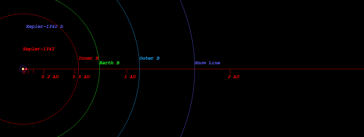 主星 Kepler-1342 のハビタブル・ゾーンは以下の位置にあります。
