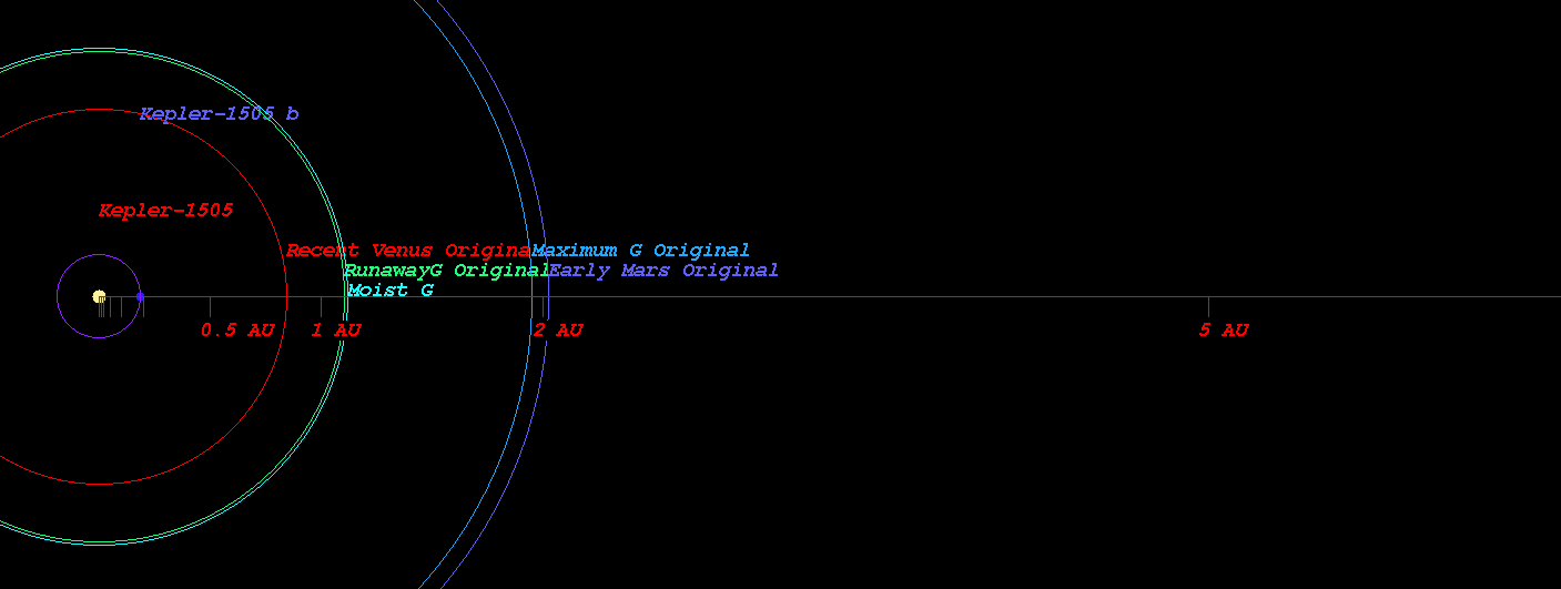 (Habitable zone calculated based on SEAU(Solar Equivalent Astronomical Unit) around the star Kepler-1505)