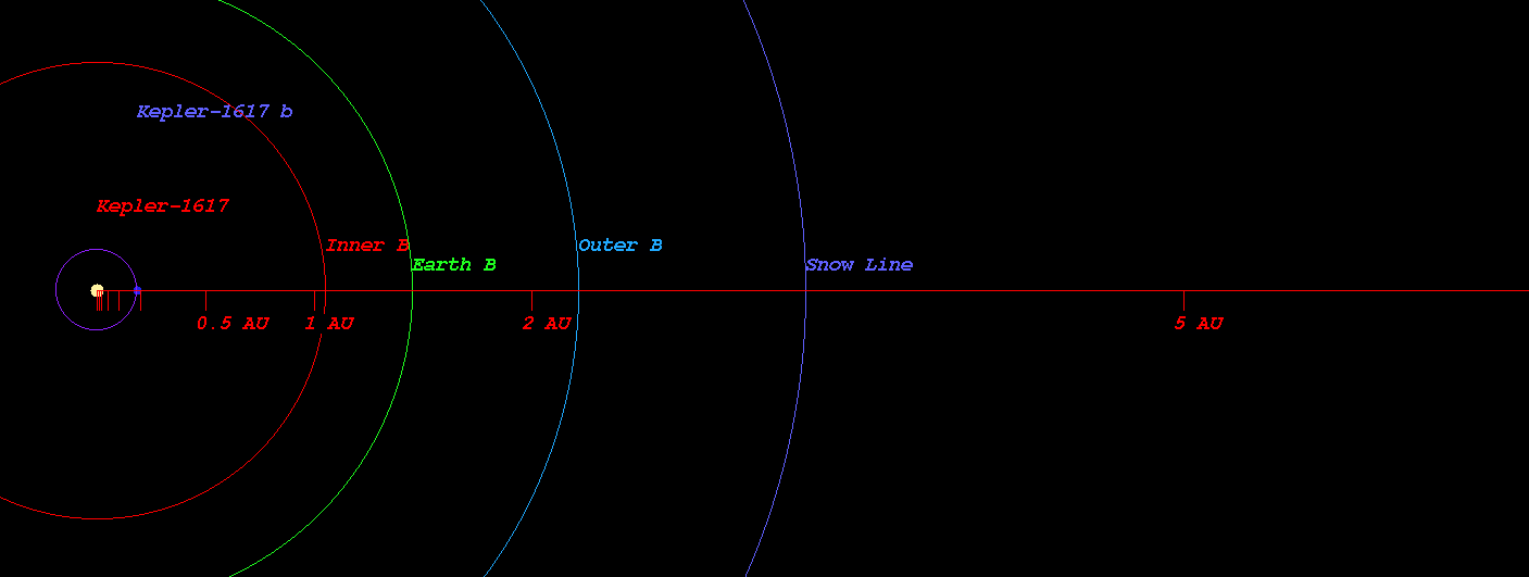 (Habitable zone calculated based on SEAU(Solar Equivalent Astronomical Unit) around the star Kepler-1617)