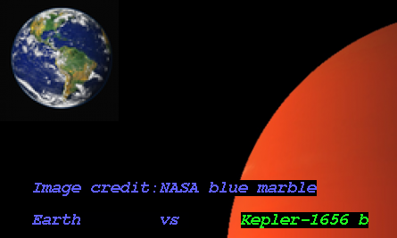 Kepler-1656 b is an exoplanet orbiting the star Kepler-1656, located about 609.5 light-years (186.9 pc) away from Solar System. Its discovery was publicly announced on 2018.