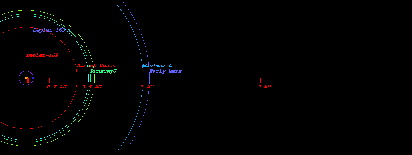(Habitable zone calculated based on SEAU(Solar Equivalent Astronomical Unit) around the star Kepler-169)