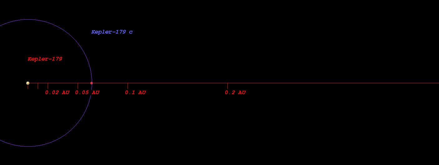 In this planetary system, the extrasolar planet Kepler-179 c orbits around the star Kepler-179 every 6.4 days with its orbital distance of 0.06 AU ( 9574263.7 km)