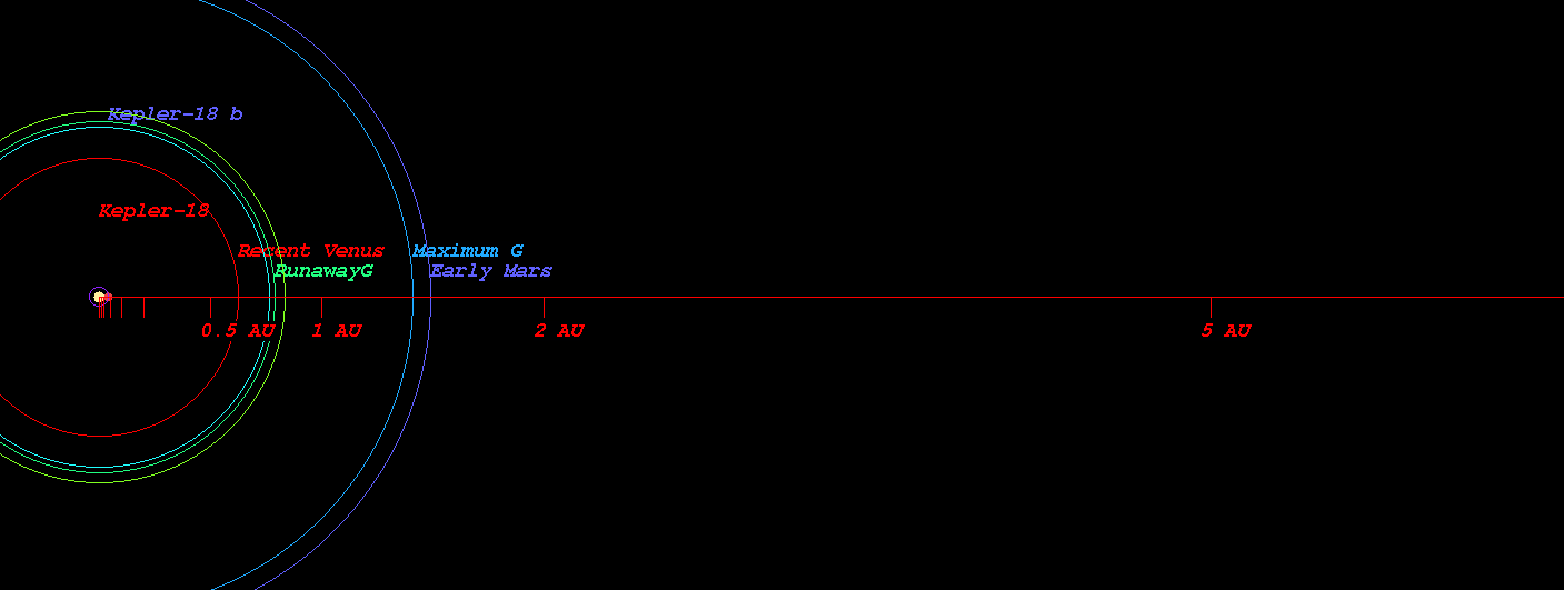 (Habitable zone calculated based on SEAU(Solar Equivalent Astronomical Unit) around the star Kepler-18)