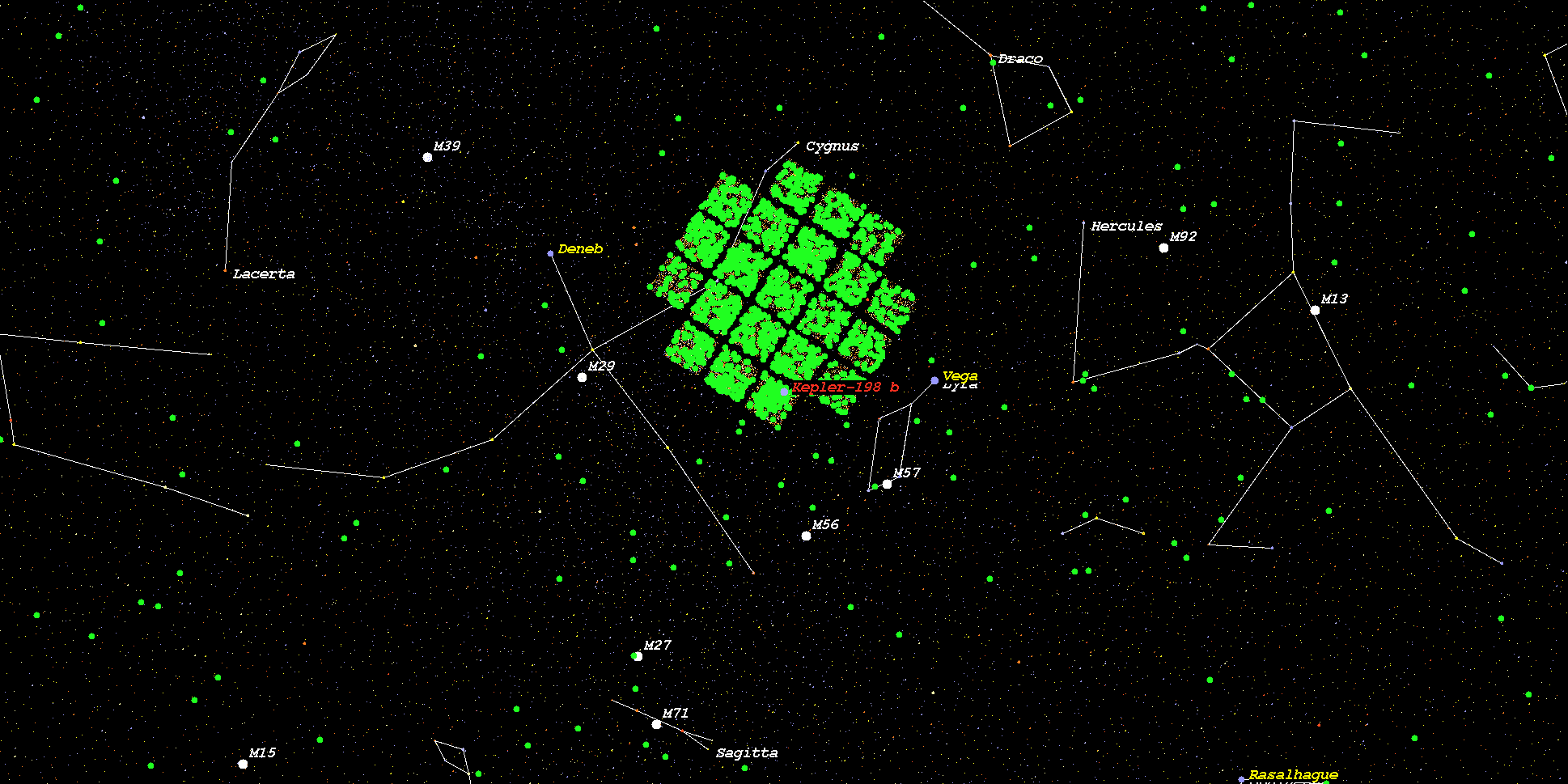 (恒星 Kepler-198 とその系外惑星 Kepler-198 b のExoKyotoステラマップでの位置)