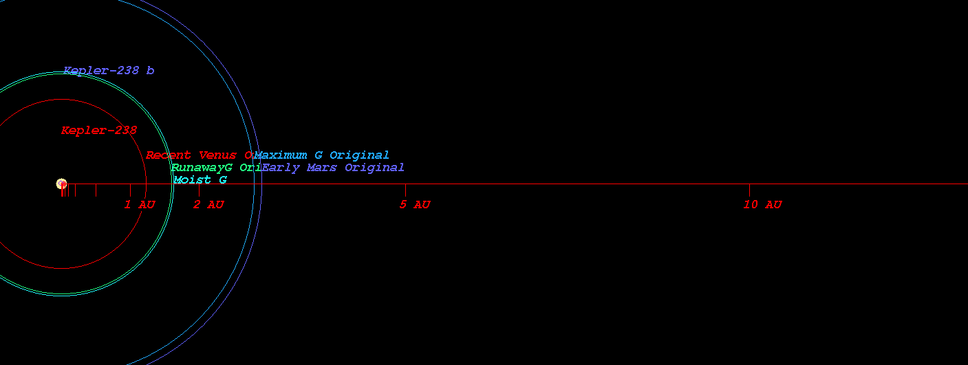 主星 Kepler-238 のハビタブル・ゾーンは以下の位置にあります。