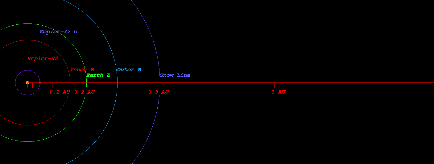 (Habitable zone calculated based on SEAU(Solar Equivalent Astronomical Unit) around the star Kepler-32)