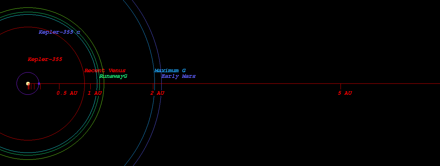 (Habitable zone calculated based on SEAU(Solar Equivalent Astronomical Unit) around the star Kepler-355)