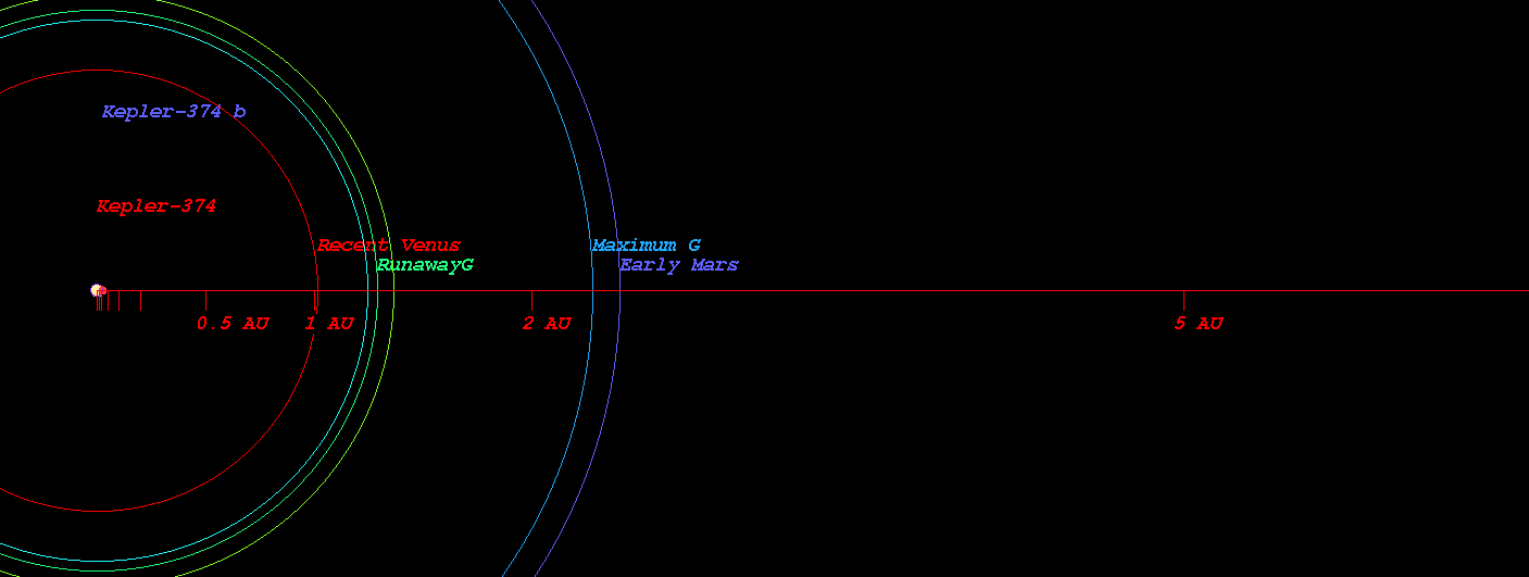 (Habitable zone calculated based on SEAU(Solar Equivalent Astronomical Unit) around the star Kepler-374)
