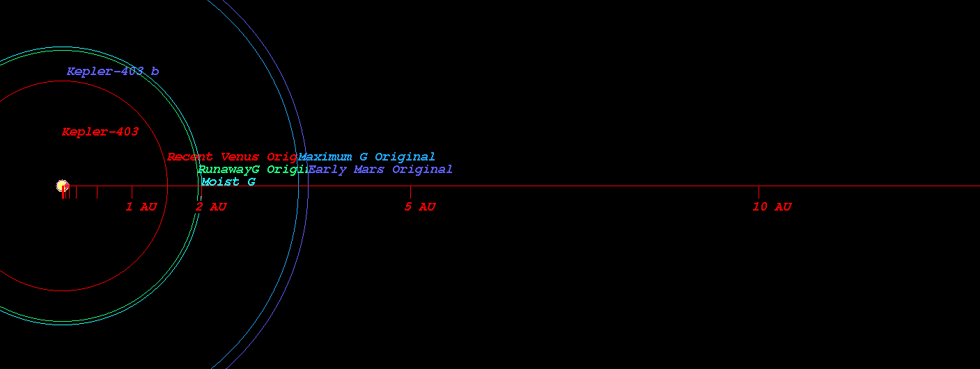 (Habitable zone calculated based on SEAU(Solar Equivalent Astronomical Unit) around the star Kepler-403)