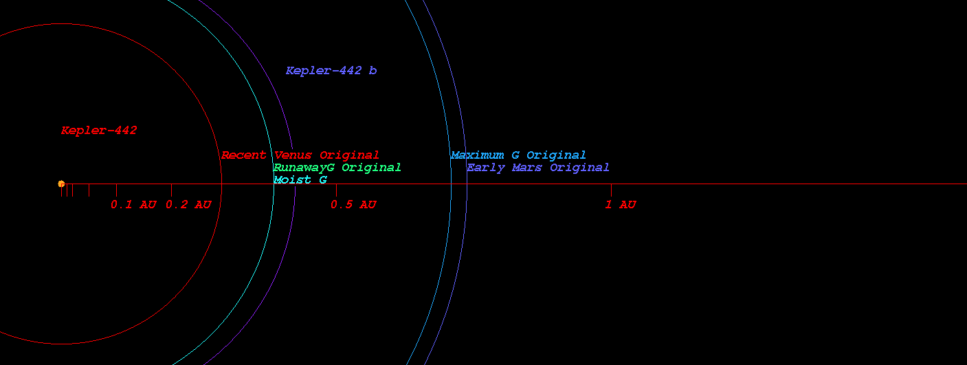 (Habitable zone calculated based on SEAU(Solar Equivalent Astronomical Unit) around the star Kepler-442)