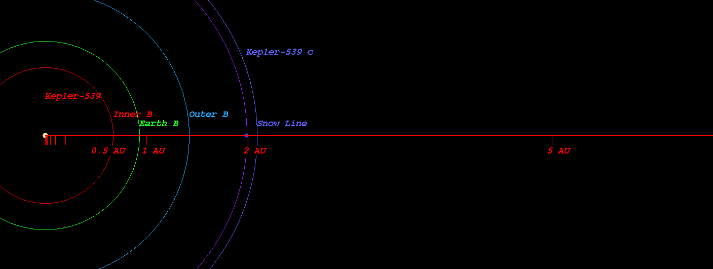 (Habitable zone calculated based on SEAU(Solar Equivalent Astronomical Unit) around the star Kepler-539)