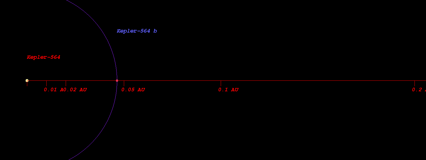 In this planetary system, the extrasolar planet Kepler-564 b orbits around the star Kepler-564 every 3.8 days with its orbital distance of 0.05 AU ( 6947974.7 km)