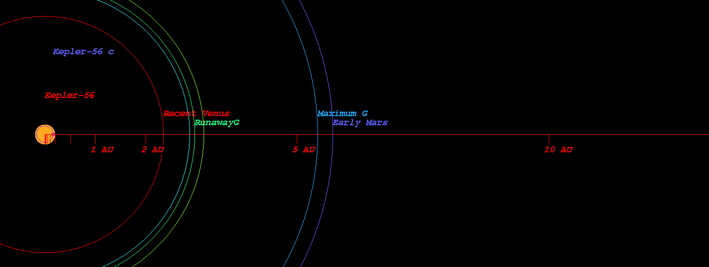 (Habitable zone calculated based on SEAU(Solar Equivalent Astronomical Unit) around the star Kepler-56)