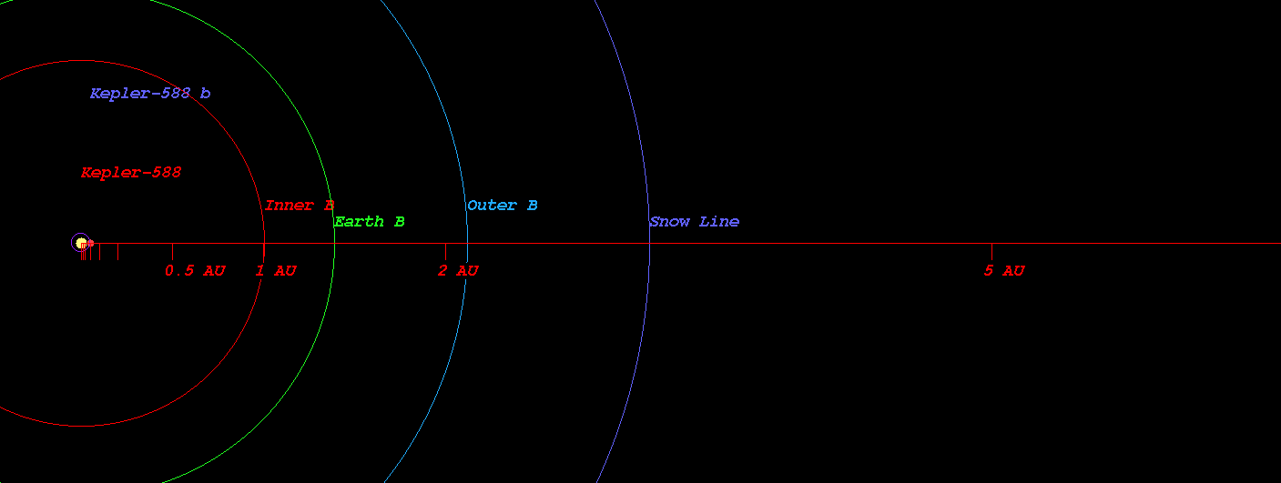 (Habitable zone calculated based on SEAU(Solar Equivalent Astronomical Unit) around the star Kepler-588)