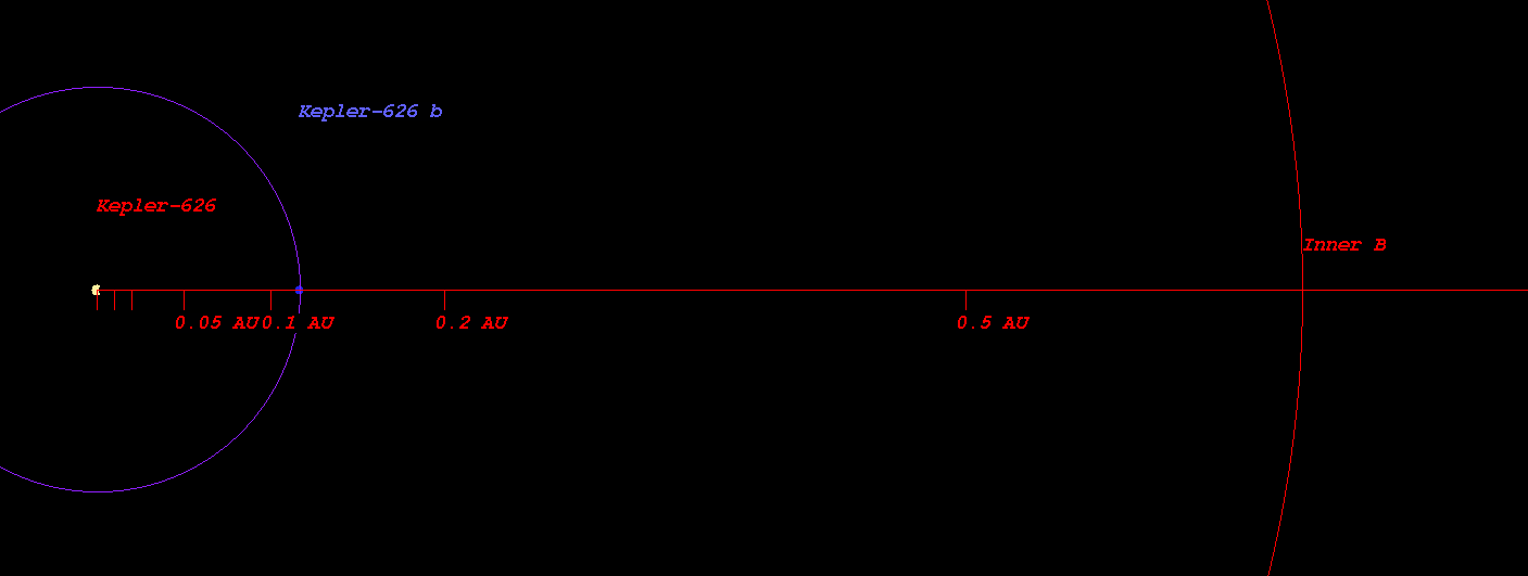 In this planetary system, the extrasolar planet Kepler-626 b orbits around the star Kepler-626 every 14.5 days with its orbital distance of 0.12 AU ( 17455612.1 km)