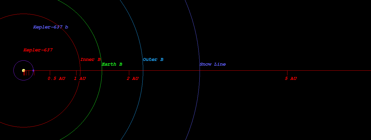 主星 Kepler-637 のハビタブル・ゾーンは以下の位置にあります。