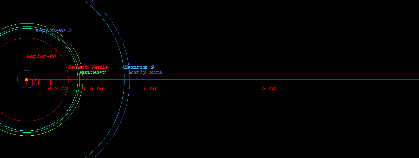 (Habitable zone calculated based on SEAU(Solar Equivalent Astronomical Unit) around the star Kepler-80)