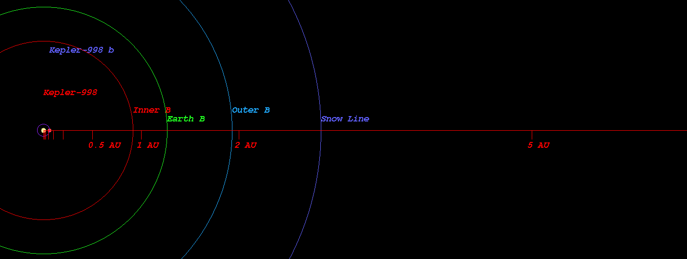 (Habitable zone calculated based on SEAU(Solar Equivalent Astronomical Unit) around the star Kepler-998)